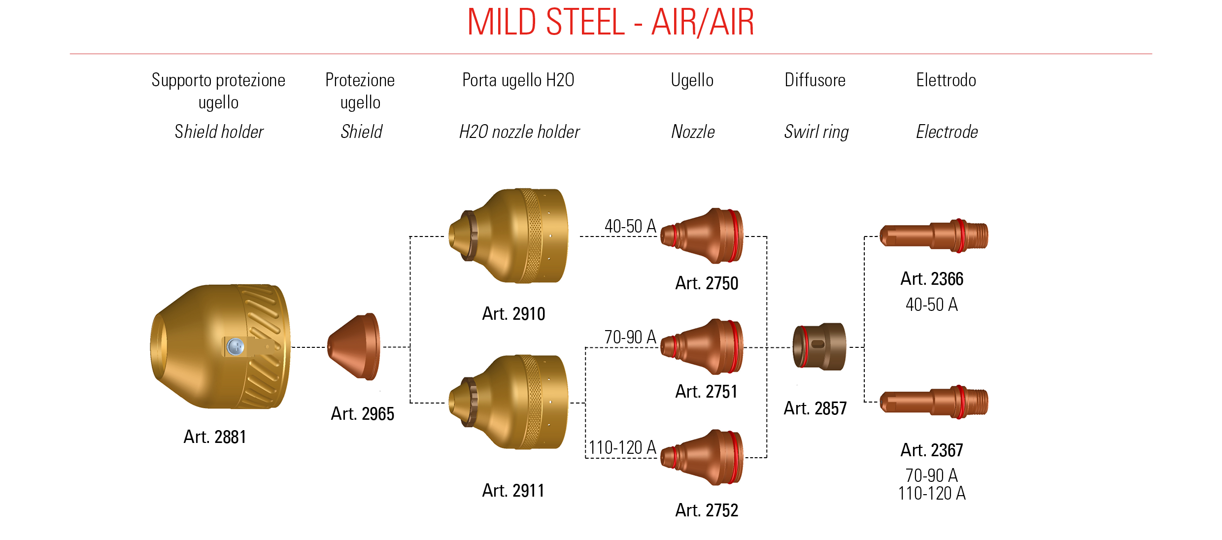 Accessori e parti di consumo per taglio di ferro con aria / aria