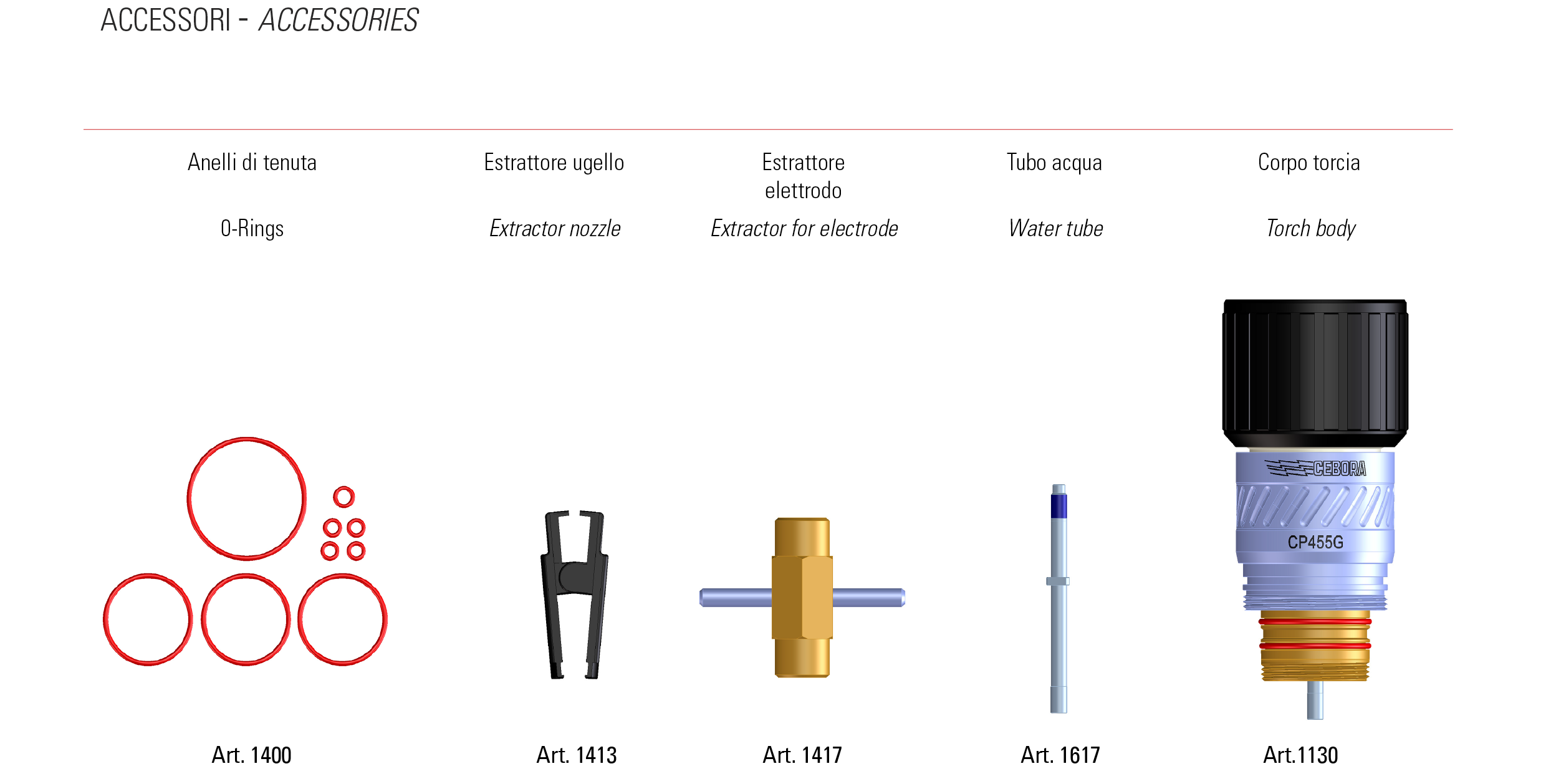 Il marchio registrato CP identifica le parti consumabili originali Cebora per i generatori plasma. Cebora raccomanda vivamente l’utilizzo di parti consumabili originali CP, in quanto sono le uniche in grado di garantire le prestazioni previste per la combinazione generatore-torcia. La geometria e la scelta dei materiali dei consumabili CP nascono contestualmente alla progettazione del generatore e della torcia, e rappresentano il miglior compromesso tra prestazione, affidabilità e vita del pezzo, il tutto nel rispetto delle normative IEC 60974-7.